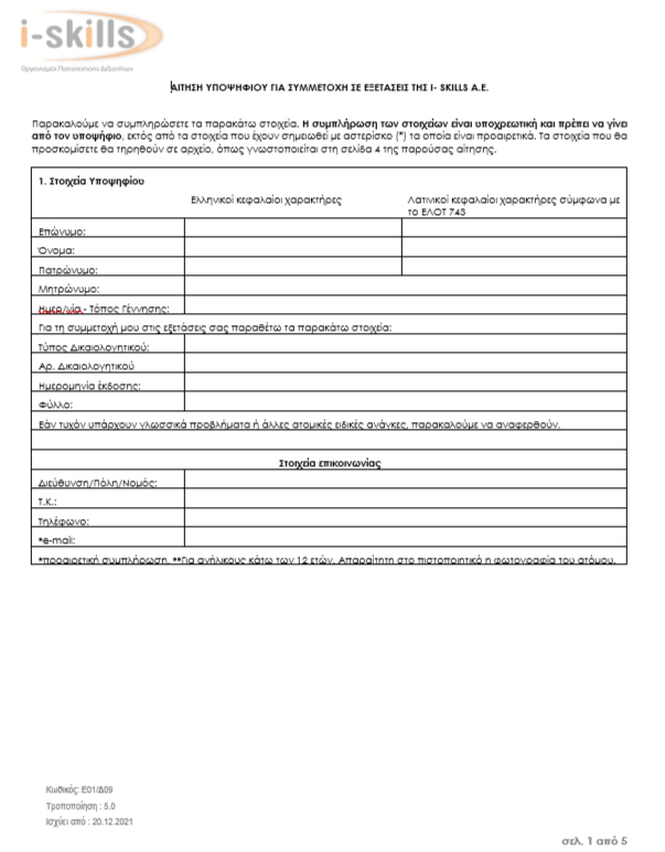 Αίτηση Συμμετοχής σε Εξετάσεις Πιστοποίησης